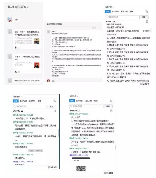 支部大部分黨員老師都兼任學(xué)生班主任工作,他們堅持教書育人,以德為先,除了完成日常的教學(xué)工作,還與輔導(dǎo)員們一起,共同活躍在關(guān)心關(guān)愛學(xué)生的第一線。每日通過電話、網(wǎng)絡(luò)通訊工具(微信、QQ)對學(xué)生進行疫情排查摸底,摸排所帶班級的學(xué)生狀況、關(guān)注學(xué)生的疫情數(shù)據(jù)、問候湖北籍學(xué)生、轉(zhuǎn)發(fā)官方最新的防控信息……