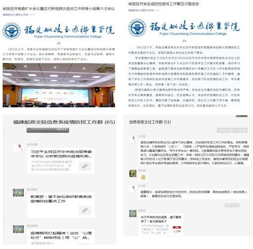 全體黨員教師認真學(xué)習(xí)習(xí)近平關(guān)于新冠肺炎疫情防控工作系列重要講話精神、上級和學(xué)院關(guān)于防控工作相關(guān)文件,主動通過QQ群、微信公眾號等新媒體平臺宣傳并學(xué)習(xí)學(xué)校防控工作要求、防疫知識、防疫進展情況;深入開展“疫情防控”主題黨日活動,弘揚正能量,不僅做到自己亮身份、樹形象,將責(zé)任內(nèi)化于心、外化于行,更是注重引導(dǎo)身邊師生群眾仔細辨別核實各類信息,做到不信謠不傳謠,以實際行動帶動師生共同抗疫。