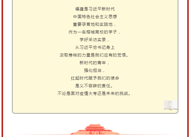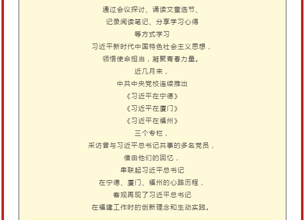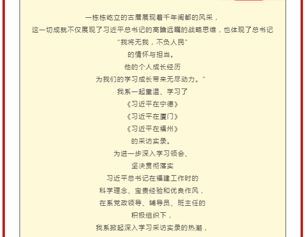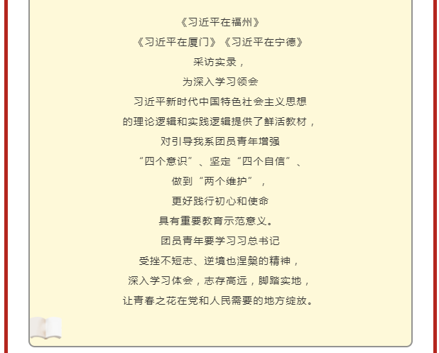 信息工程系||牢記初心使命 勇于擔當作為 ——學(xué)習(xí)《習(xí)近平在寧德》《習(xí)近平在廈門》《習(xí)近平在福州》 采訪實錄線上團日活動