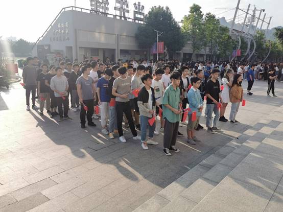 全體師生合唱“我和我的祖國一刻也不能分割,無論我走到哪里都流出一首贊歌......”向祖國唱一曲衷心的贊歌,唱出我們的拳拳赤子心,頌出矢志不渝的愛國情。