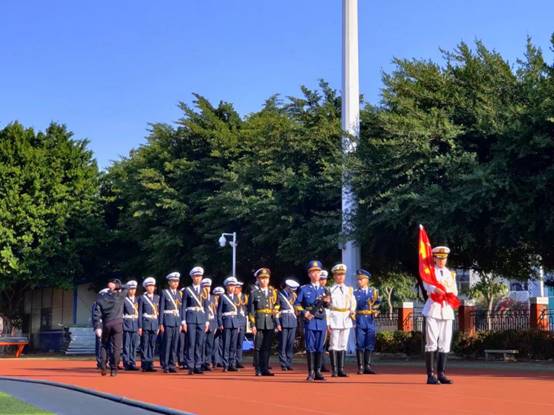 五星紅旗迎風飄揚,嘹亮歌聲飽含熱望。今天,校園披上紅裳,船政師生共聚北區(qū)田徑場,舉行慶祝新中國成立71周年升旗儀式。升旗儀式上,迎著冉冉朝陽,國歌響起,全體在場師生一齊向國旗行注目禮,誠摯而肅穆地目送國旗緩緩上升。我們舞動著手中的小國旗,為祖國母親獻上真摯美好的祝福!
