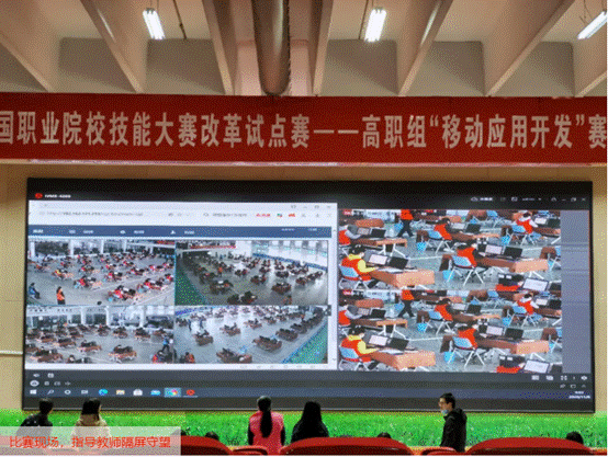 比賽現(xiàn)場(chǎng),指導(dǎo)教師隔屏守望