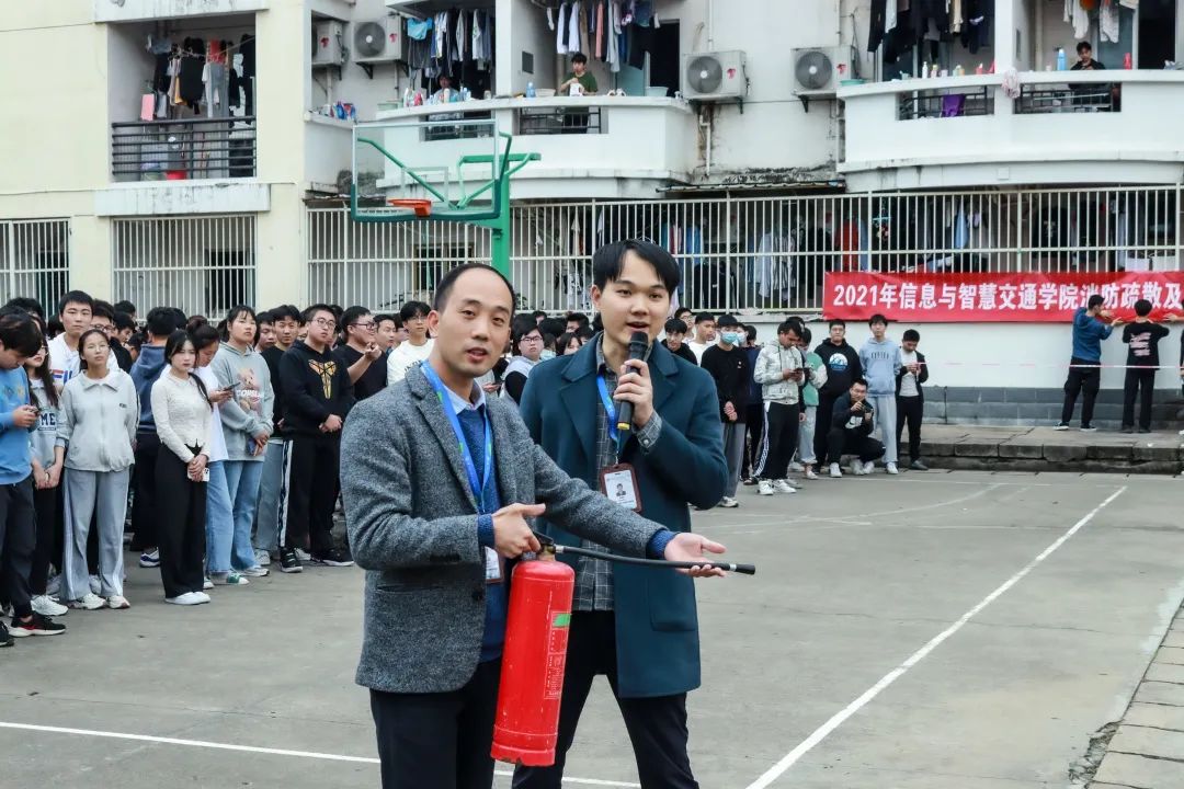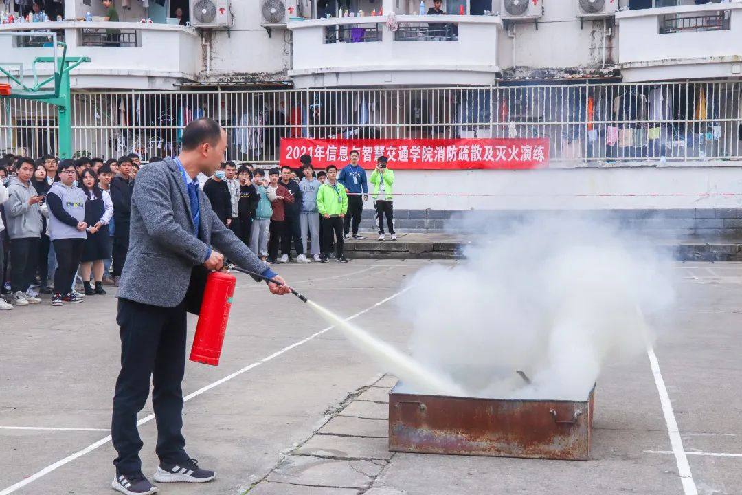 信息與智慧交通學(xué)院副院長陳自力為此次活動進行講話,他表示此次消防演練活動的開展,不僅是為了強化了師生的安全意識,了解了火災(zāi)發(fā)生時的應(yīng)對措施,而且也能大大增強了廣大師生的自救自護技能,希望各位同學(xué)能夠認真學(xué)習(xí)消防演練知識。