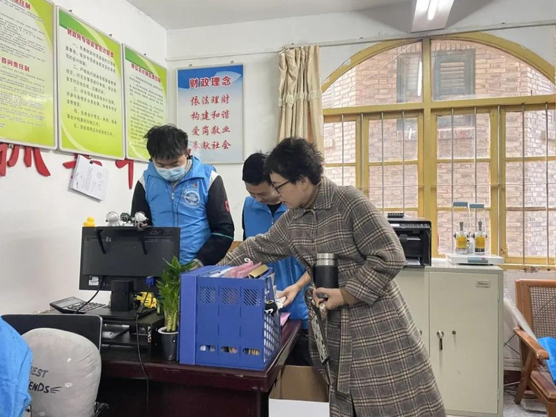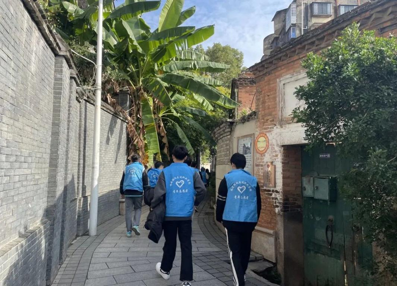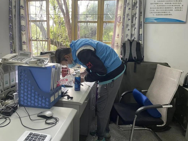看這些身穿藍(lán)衣馬甲的志愿者們正在認(rèn)真