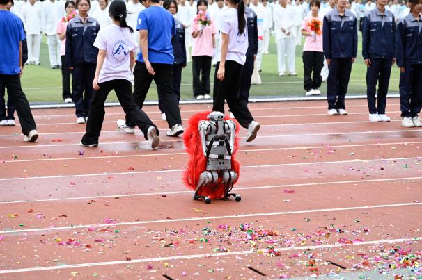 開幕式上,我院學(xué)子組成的方陣踏著整齊步伐有序入場。同學(xué)們身著統(tǒng)一服裝,嘹亮口號(hào)響徹賽場,將朝氣蓬勃的精神面貌展現(xiàn)得淋漓盡致。方陣退場后,扇子舞表演緩緩啟幕:數(shù)十名學(xué)子手持彩扇,隨音樂節(jié)拍翩然起舞,動(dòng)作規(guī)范劃一,扇面開合間盡顯韻律之美,贏得臺(tái)下陣陣掌聲。隨后,科技元素驚艷登場,身著同款服裝的機(jī)器人邁著穩(wěn)健步伐步入場地,精準(zhǔn)流暢的動(dòng)作宛如一場“科技舞蹈”;機(jī)器狗亦活力十足,在場地內(nèi)靈動(dòng)穿梭,更騰空躍起完成利落空翻。二者的精彩演繹,引得現(xiàn)場歡呼聲此起彼伏。整場表演既彰顯學(xué)子風(fēng)采,又展現(xiàn)科技成果,成功將開幕式氛圍推向高潮。