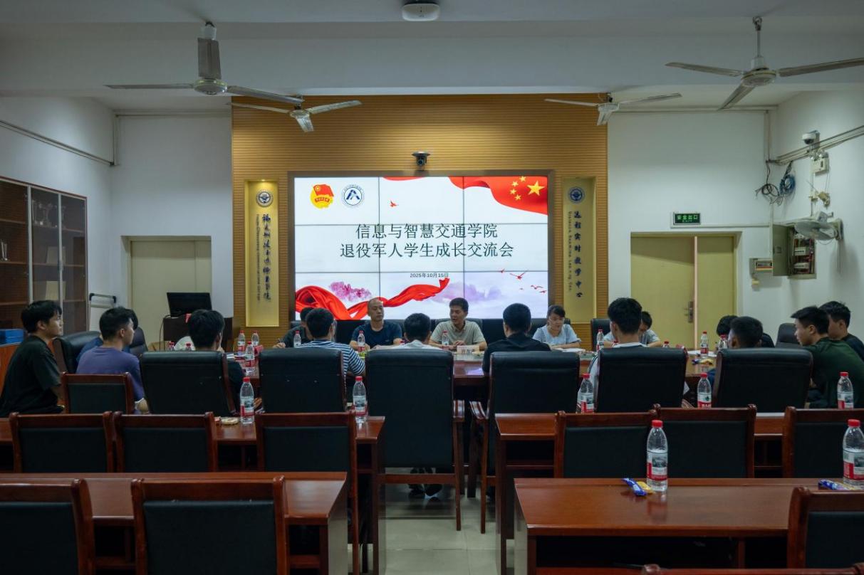 為弘揚(yáng)軍人精神、搭建師生交流橋梁、增強(qiáng)退役軍人學(xué)生的歸屬感與榮譽(yù)感,信息與智慧交通學(xué)院于10月15日下午在福道園自強(qiáng)樓2-1教室成功舉辦退役軍人交流會。本次活動以“分享軍旅經(jīng)歷、共話成長感悟”為核心,通過面對面交流讓在場人員深刻感受軍人精神的力量,進(jìn)一步凝聚對退役軍人學(xué)生的關(guān)心與支持力量。
