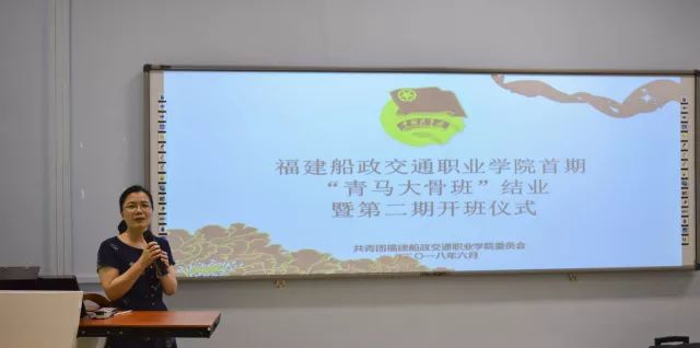 陳艷紅副院長在開班儀式致辭,她說:”青馬大骨班“的學(xué)員,不僅是團(tuán)學(xué)干部,更是學(xué)院優(yōu)秀學(xué)子的典型代表。"青馬工程"的首要任務(wù),就是培養(yǎng)具有堅(jiān)定馬克思主義理想信念的青年學(xué)生,充分發(fā)揮團(tuán)員青年在學(xué)院建設(shè)發(fā)展中的生力軍和突擊隊(duì)作用。她希望第二期青馬大骨班的同學(xué)向首期優(yōu)秀學(xué)員學(xué)習(xí),在繼承中創(chuàng)新,并對(duì)第二期青馬大骨班學(xué)員提出了三點(diǎn)要求: