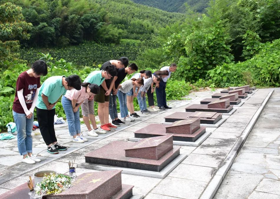 離開(kāi)了紀(jì)念館,實(shí)踐隊(duì)來(lái)到了大嶺村烈士陵園。在當(dāng)年那戰(zhàn)火紛飛的年代,為了中國(guó)人民的解放事業(yè),許多仁人志士在這里拋頭顱,灑熱血,奉獻(xiàn)出自己寶貴的生命,由于戰(zhàn)爭(zhēng)時(shí)期條件限制,在這里浴血奮戰(zhàn)的革命烈士們零散埋葬在南坑鎮(zhèn)各個(gè)地方,為緬懷先烈,特遷移至此。實(shí)踐隊(duì)隊(duì)員們站在烈士碑前,緬懷烈士們豐功偉績(jī),三鞠躬表達(dá)自己對(duì)烈士的敬仰之情。