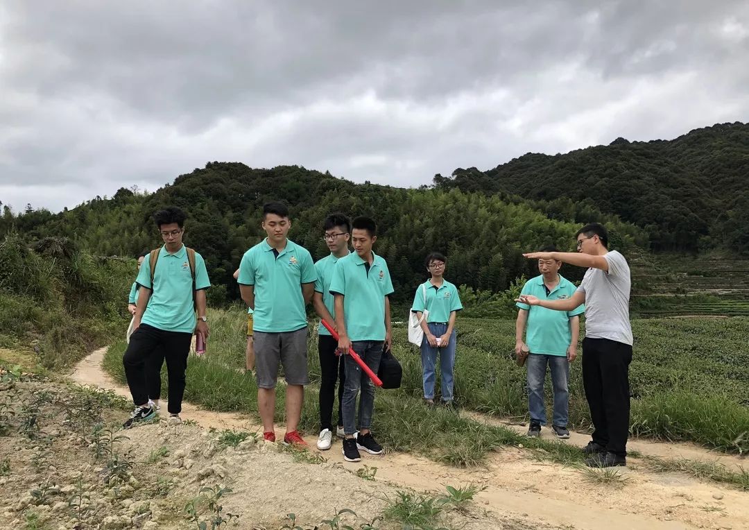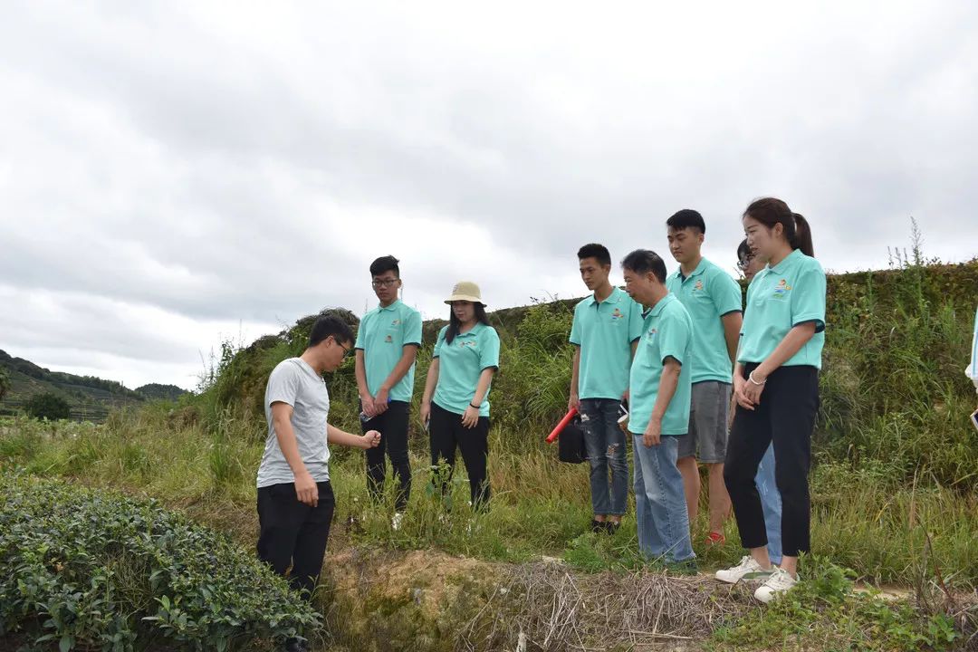 實(shí)踐隊(duì)一行人在村書記的帶領(lǐng)之下前往金竹村茶園進(jìn)行實(shí)地考察。