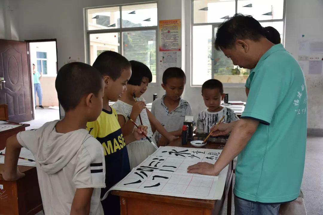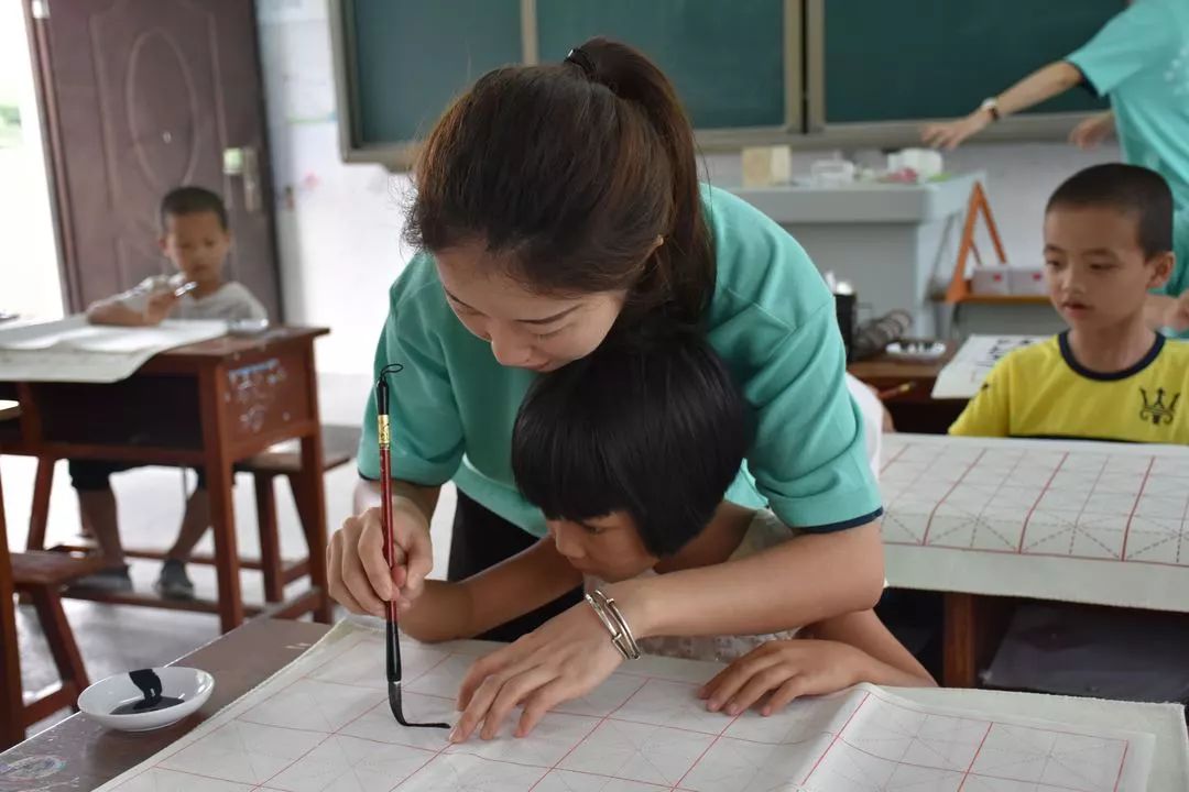 實(shí)踐隊(duì)隊(duì)員給當(dāng)?shù)氐膶W(xué)生講授書法的基礎(chǔ)知識(shí),并進(jìn)行現(xiàn)場(chǎng)教學(xué)。管理工程系林祥庚書記和隊(duì)員們對(duì)他們進(jìn)行了細(xì)致的講授。當(dāng)?shù)氐膶W(xué)生都是第一次接觸書法,表現(xiàn)出了極大的興趣,專心致志的學(xué)習(xí)。
