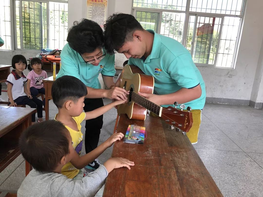 實(shí)踐隊(duì)隊(duì)員和當(dāng)?shù)氐膶W(xué)生一起學(xué)習(xí)古詩(shī)詞,為他們講解詩(shī)詞的意義,并以樂(lè)器彈唱的方式進(jìn)行演繹——這是現(xiàn)代音樂(lè)與古代詞句的一次美麗的邂逅,讓大家再次感受到有著數(shù)千年歷史的詩(shī)歌的韻味和煥發(fā)出的新的活力。同時(shí)實(shí)踐隊(duì)隊(duì)員還帶來(lái)了美工課程。一把剪刀、一張紙、一個(gè)構(gòu)想,完成屬于自己的一份作品。