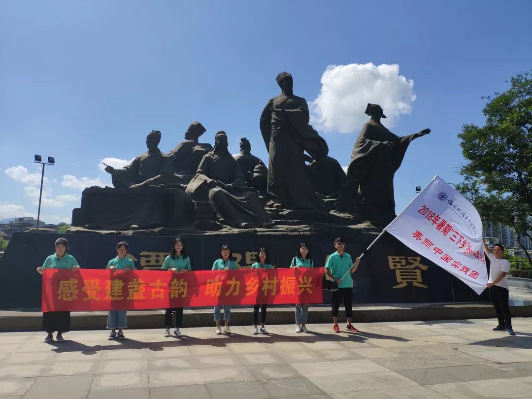 早在四千多年前,就有居民在建陽勞動(dòng)、生息。漢朝建安時(shí)期建陽曾隸屬于建平郡。后經(jīng)過歷史的洗禮,建陽也涌現(xiàn)出許多名人,其中最出名的要數(shù)朱熹、宋慈兩位。實(shí)踐團(tuán)跟隨當(dāng)?shù)厝税菰L了朱熹晚年講學(xué)時(shí)所住的考亭書院,重溫了朱子理學(xué)之精妙;參觀了宋慈廣場(chǎng),感受古代文人對(duì)生命的嚴(yán)謹(jǐn)態(tài)度。
