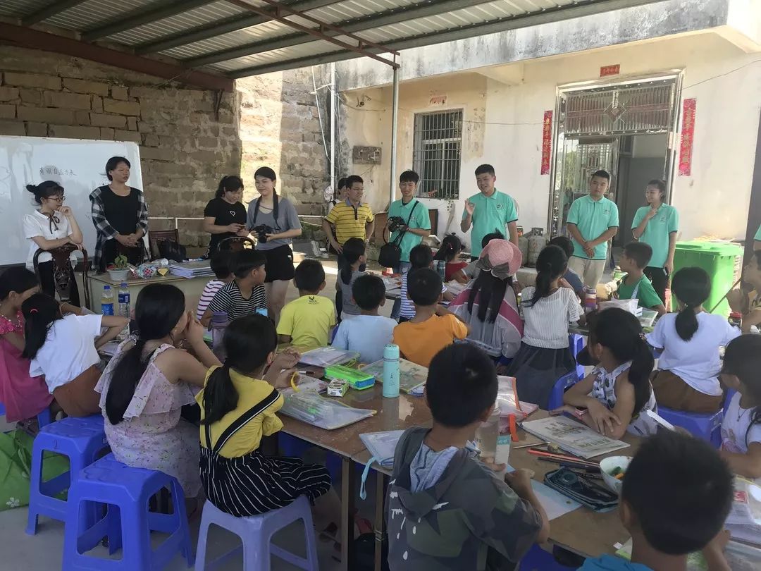 7月17日,實踐團隊一行來到西潭鄉(xiāng)美營村看望留守兒童。由于時代變遷和社會發(fā)展,村里的青壯年外出謀生,留下許多留守兒童,畬族文化在村民中也越來越淡漠。為了保護和傳承畬族傳統(tǒng)民俗,讓留守兒童能繼承傳統(tǒng),充分學習文化知識,詔安縣團委就在此開設了“暑期公益學習班”。