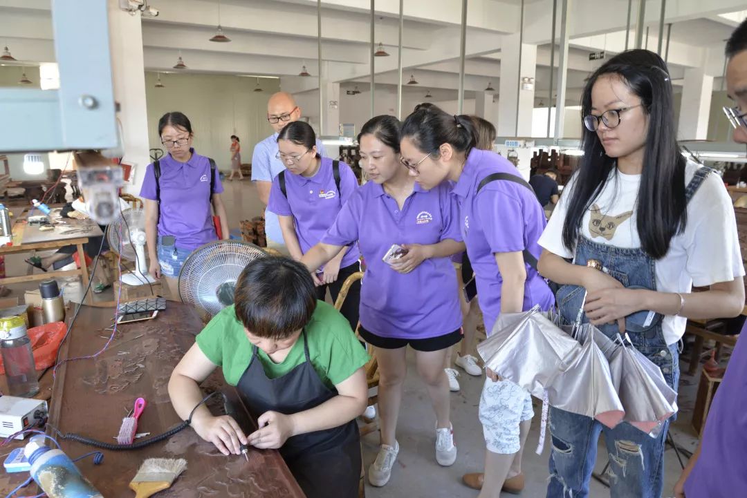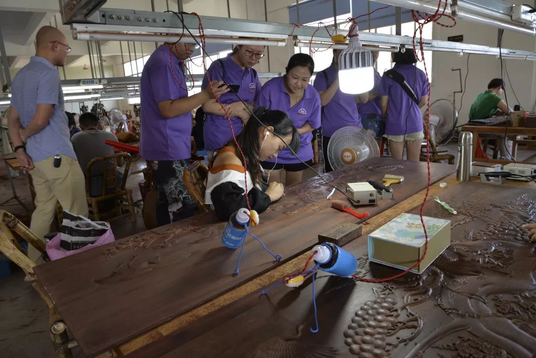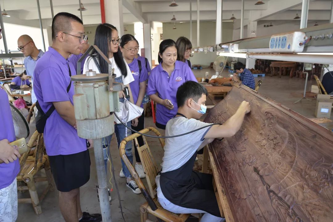 7月9日,服務團走進仙游縣皇冠古典家具有限公司,該公司主營古典家具 , 木雕工藝品生產(chǎn)以及銷售。成員們參觀了該企業(yè)的展廳,了解各種木雕工藝品以及家具的情況,并且走進了該公司的生產(chǎn)車間,開展真人圖書分享,與生產(chǎn)車間木雕工匠面對面近距離接觸,與木雕工藝師傅交流傳承傳統(tǒng)技能心得。