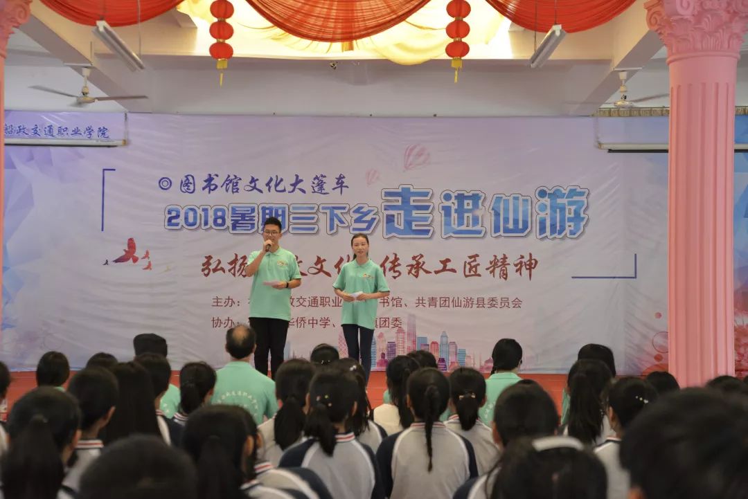 7月6日下午,福建船政交通職業(yè)學院圖書館“教育關愛服務團”2018年暑期“三下鄉(xiāng)”實踐活動,在莆田仙游華僑中學正式拉開了帷幕。華僑中學200余名學生,及當?shù)亓羰貎和煌瑓⒓印?/p>
