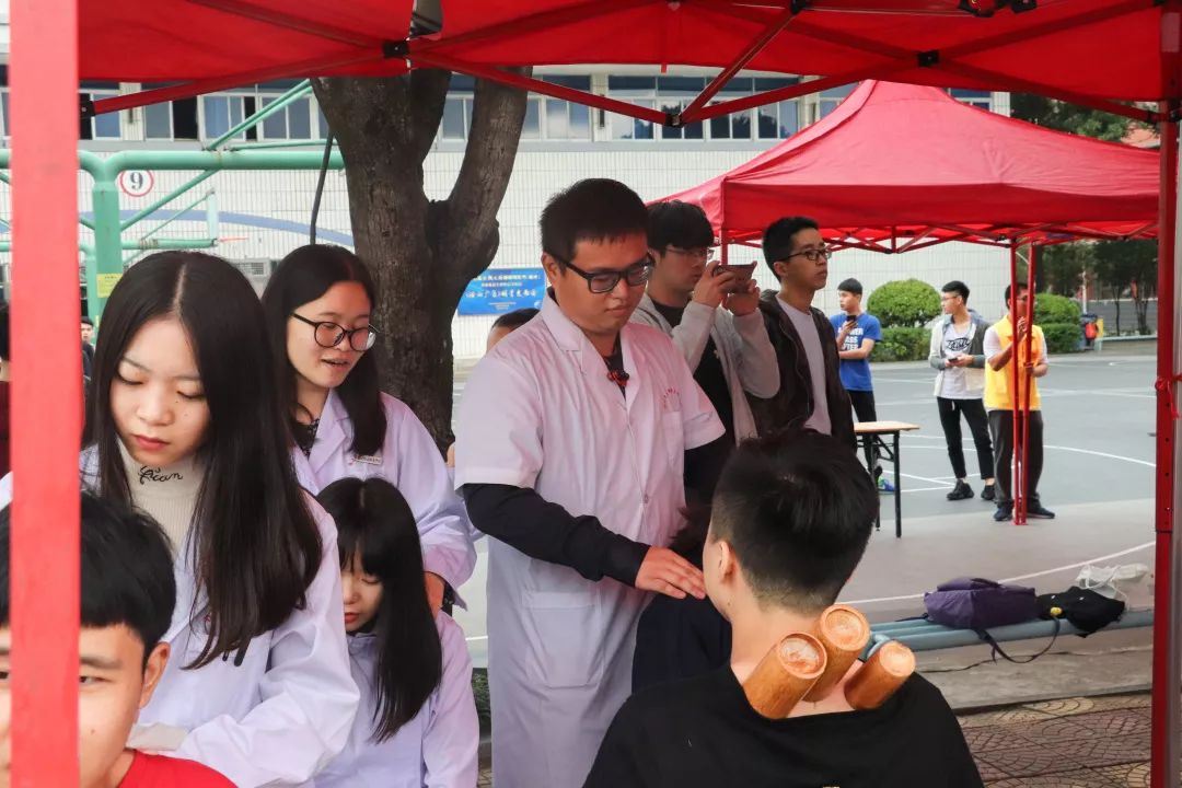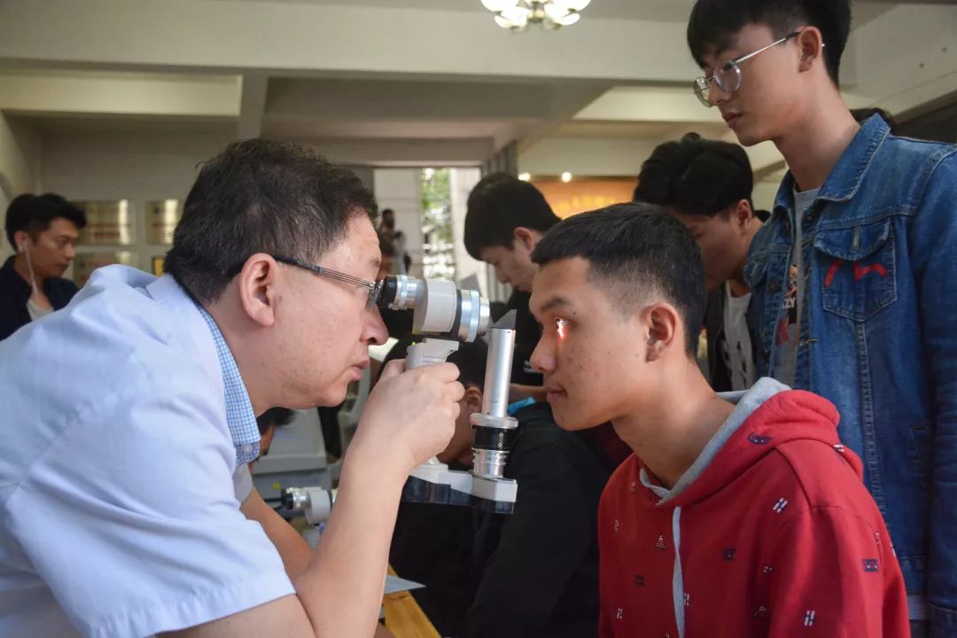 本次義診不僅有量血壓、測血型、刮痧、拔罐四項傳統(tǒng)義診項目,還另外開設了眼科保健,為同學們提供視力檢查、眼表篩查、電腦驗光、裂隙燈檢查、清洗鏡片、眼疾咨詢、視力矯正措施、用眼保健指導等幫助。