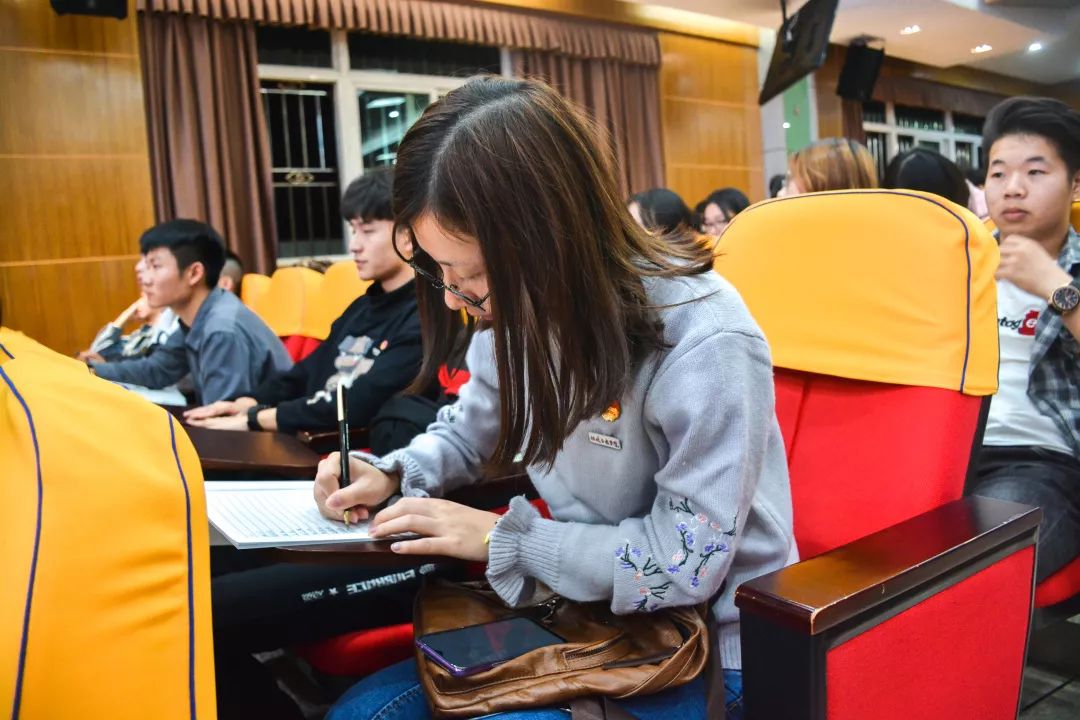 10月21日晚,校團委學生第一副書記龔鎮(zhèn)同學與學員們分享了他擔任學生干部以來的學習經(jīng)驗。并解答了同學們提出的在工作中遇見的問題。他作為“團省十四大”的代表,為大家解讀了“團十八大“、”團省十四大”工作報告精神的解讀,鼓勵學員們在新時代勇?lián)笕?,做出新作為?/p>