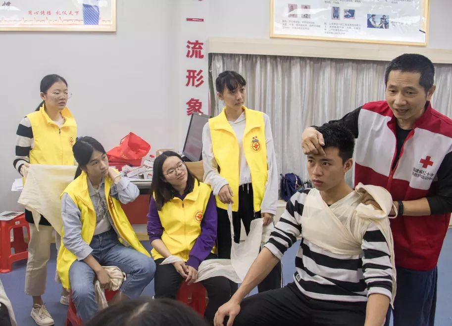 本次培訓(xùn)邀請(qǐng)到了福建省紅十字現(xiàn)場(chǎng)救護(hù)培訓(xùn)中心的許艷云老師、魏勇生老師和周冠男老師為我們指導(dǎo)救護(hù)員培訓(xùn)工作。