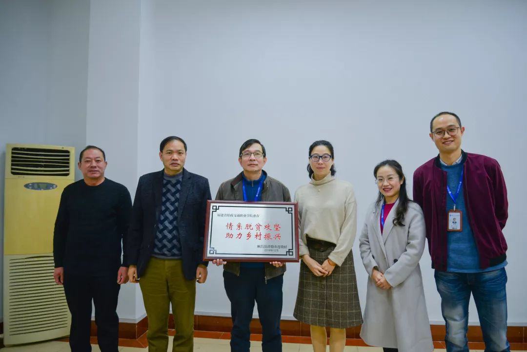 1月11日,順昌縣洋墩鄉(xiāng)黨委書記施萍;順昌縣洋墩鄉(xiāng)黨委副書記、連墩村第一書記龍成忠;順昌縣洋墩鄉(xiāng)連墩村村主任蘇家寬一行來(lái)到我院,對(duì)我院在脫貧攻堅(jiān)上所做的工作表示感謝。授予我校“情系脫貧攻堅(jiān)、助力鄉(xiāng)村振興”牌匾。