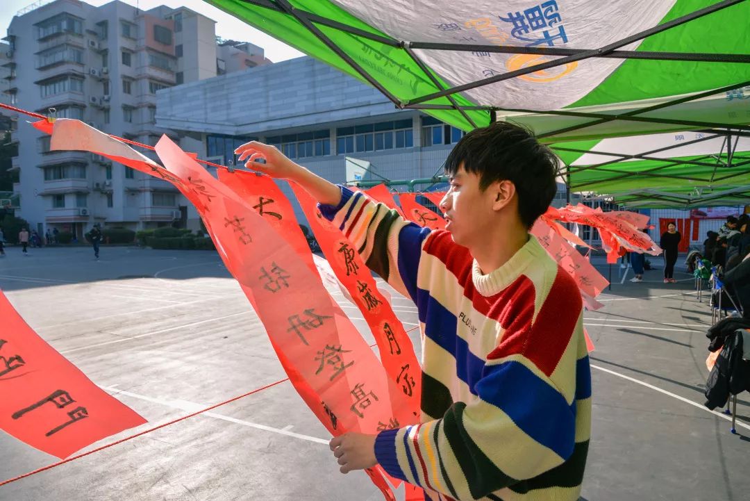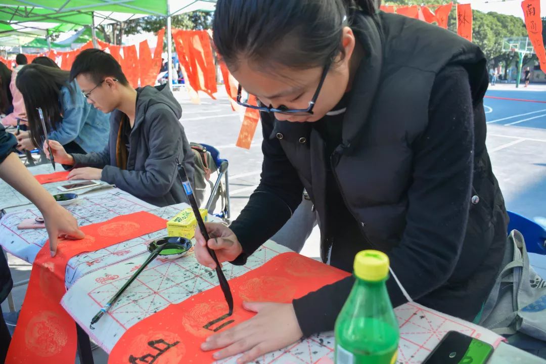 “飛揚(yáng)的紅,肆意的墨,構(gòu)成最誠(chéng)摯的愿景”。在改革開(kāi)放40周年之際,也是學(xué)校152周年之際,為倡導(dǎo)“為人民謀幸福,為大眾做貢獻(xiàn)”的精神。2018年12月26號(hào)下午,校團(tuán)委船媒中心在文體中心前舉辦“‘聯(lián)’動(dòng)師生迎元春,祈簽送福滿交院”主題活動(dòng)。