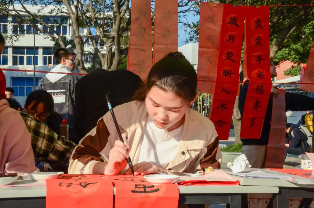 本次活動(dòng)不僅讓師生們感受到久違的濃濃年味,更重要的是傳承傳統(tǒng)文化,促進(jìn)當(dāng)代大學(xué)生對(duì)傳統(tǒng)文化的繼承!活動(dòng)中送出的不只是春聯(lián),更是對(duì)校園的祝福,對(duì)祖國(guó)未來(lái)蓬勃發(fā)展的期望。一幅幅帶著清新墨香的春聯(lián),一個(gè)個(gè)帶著美好祝愿的“?!弊?,是我們對(duì)美好青春生活的向往,是對(duì)祖國(guó)改革開(kāi)放40周年與船政學(xué)院152周年來(lái)翻天覆地變化的感嘆與歌頌!