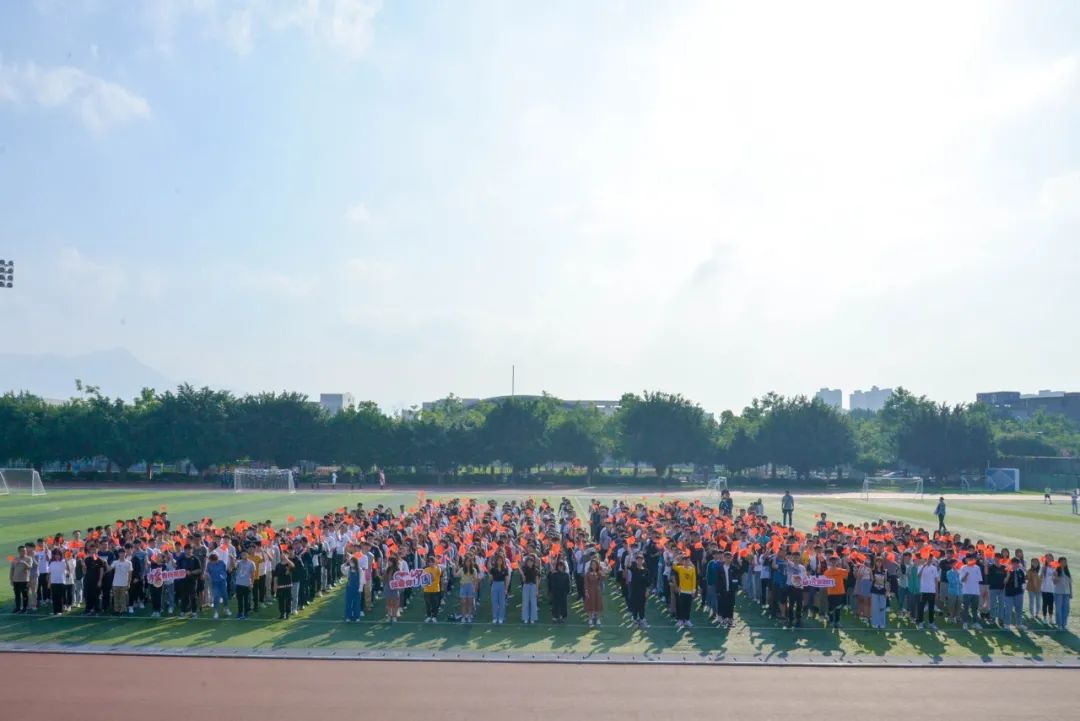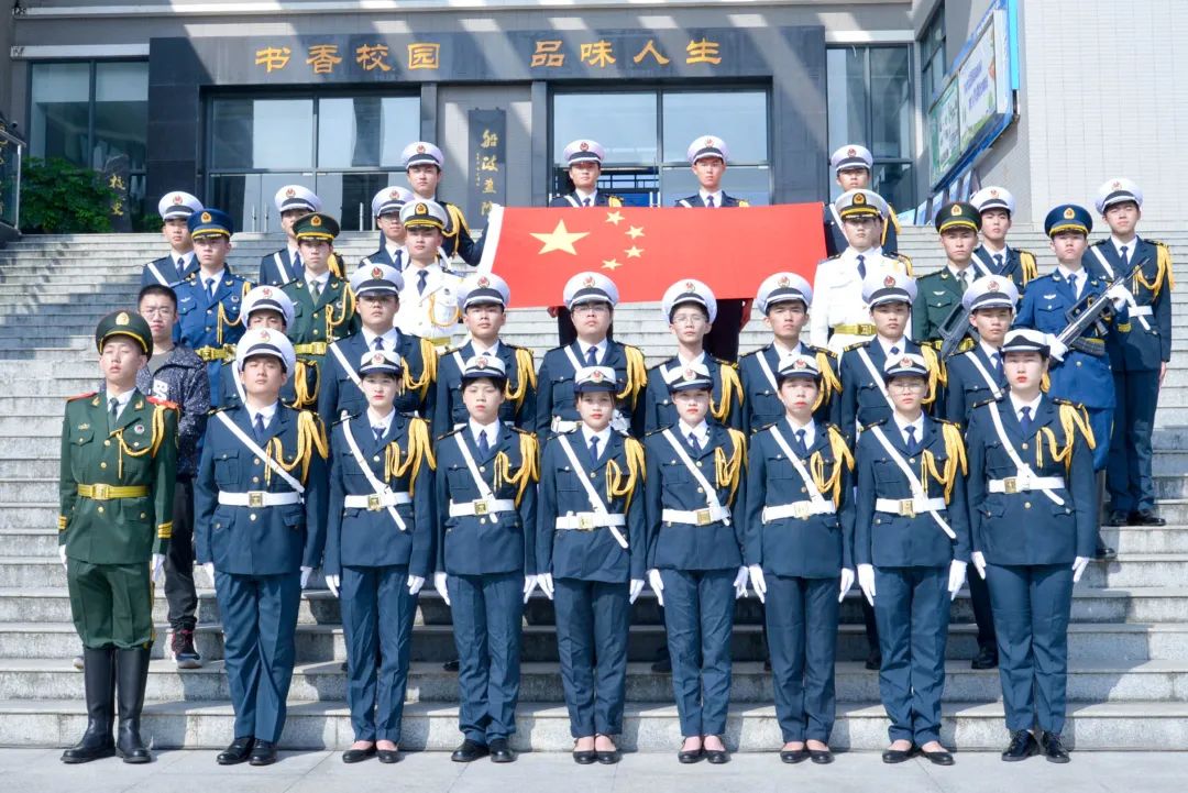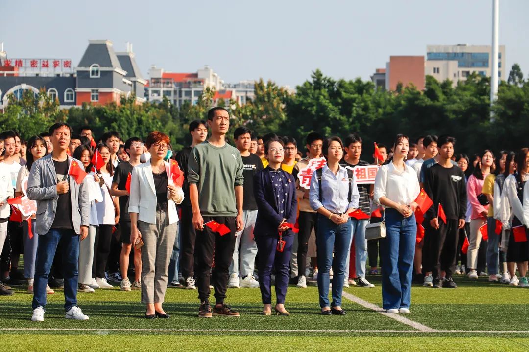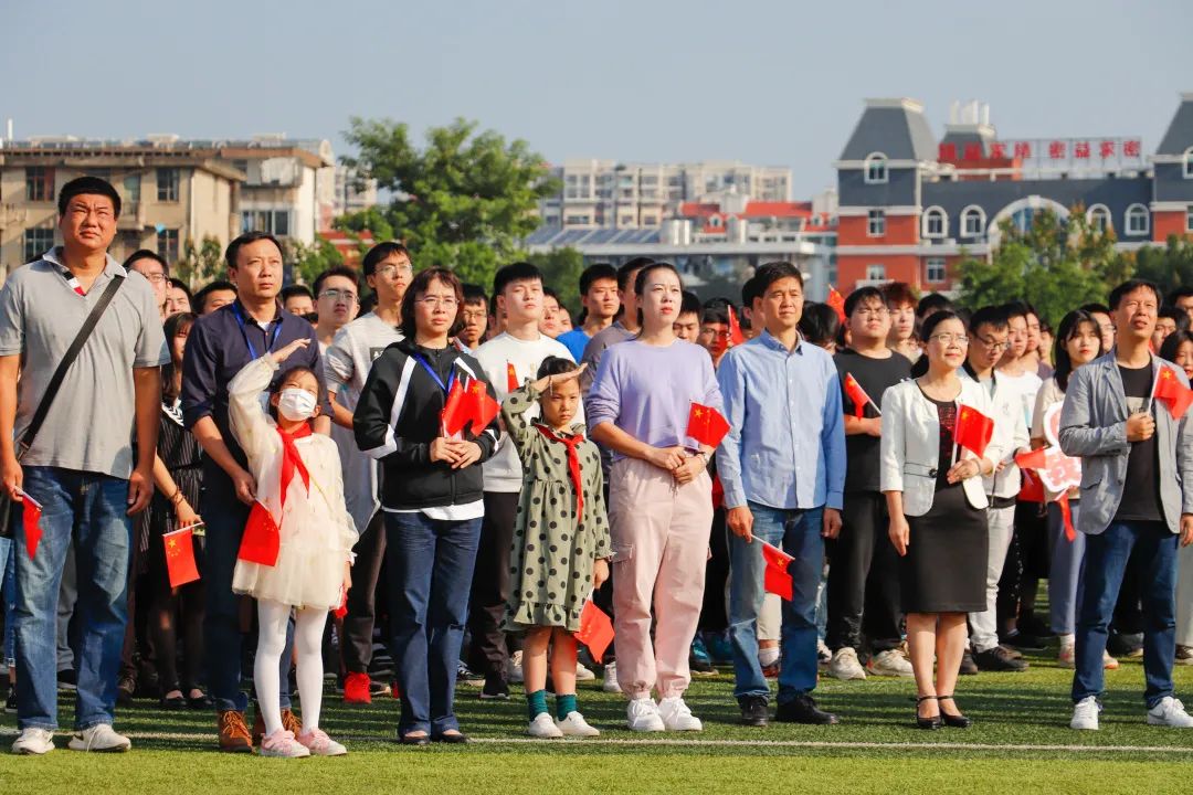 在雄壯的國歌聲中,鮮艷的五星紅旗冉冉升起,迎風(fēng)飄揚(yáng)。全體師生深懷對祖國的無限熱愛和崇高敬意,面向國旗行注目禮。