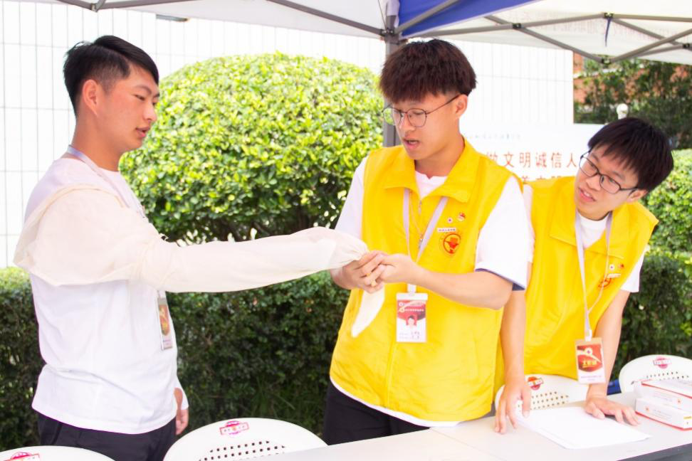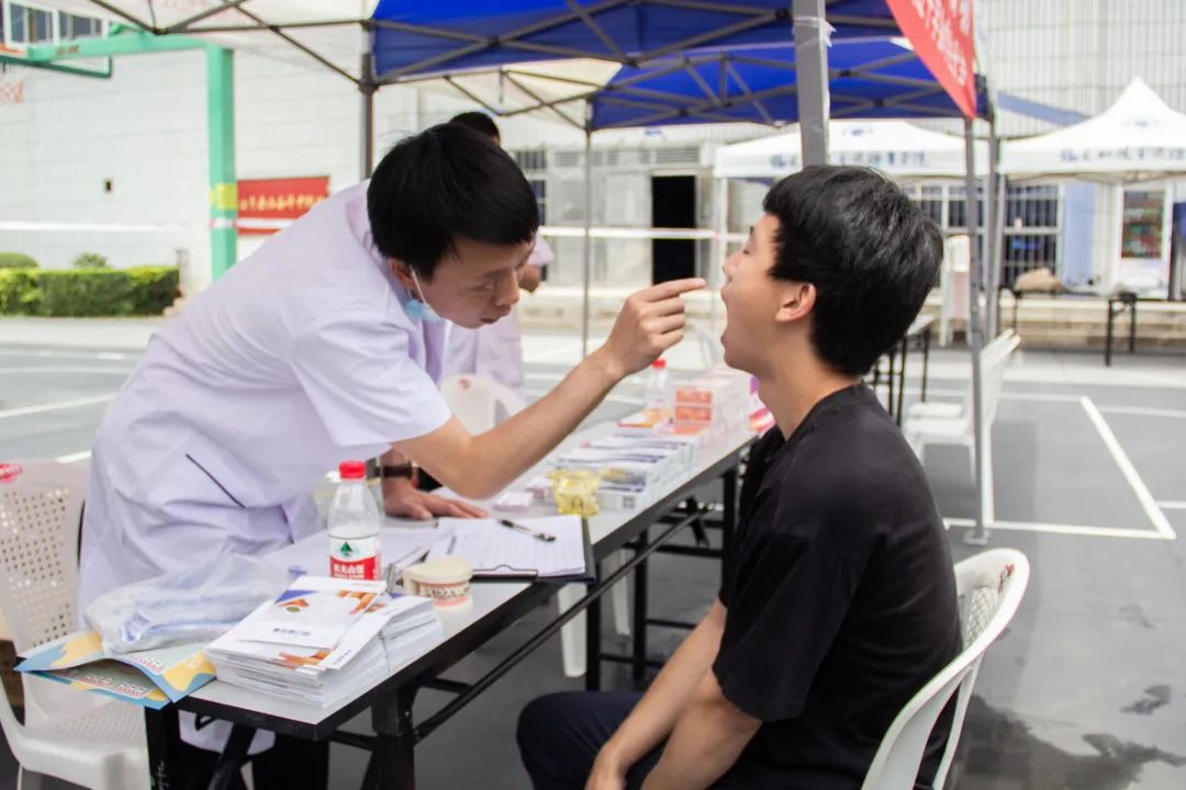 學(xué)習(xí)黨史強(qiáng)信念,我為青年辦實(shí)事。在第74個(gè)“世界紅十字日”之際,我校紅十字會(huì)學(xué)生分會(huì)于2021年5月9日在北區(qū)文體中心前籃球場(chǎng)舉辦“關(guān)愛生命、救在身邊”紀(jì)念第74個(gè)世界紅十字日的宣傳活動(dòng),開設(shè)不同活動(dòng)體驗(yàn)區(qū),為師生開展應(yīng)急救護(hù)知識(shí)技能的現(xiàn)場(chǎng)教學(xué);健康義診——視力查詢、口腔牙齒檢查。