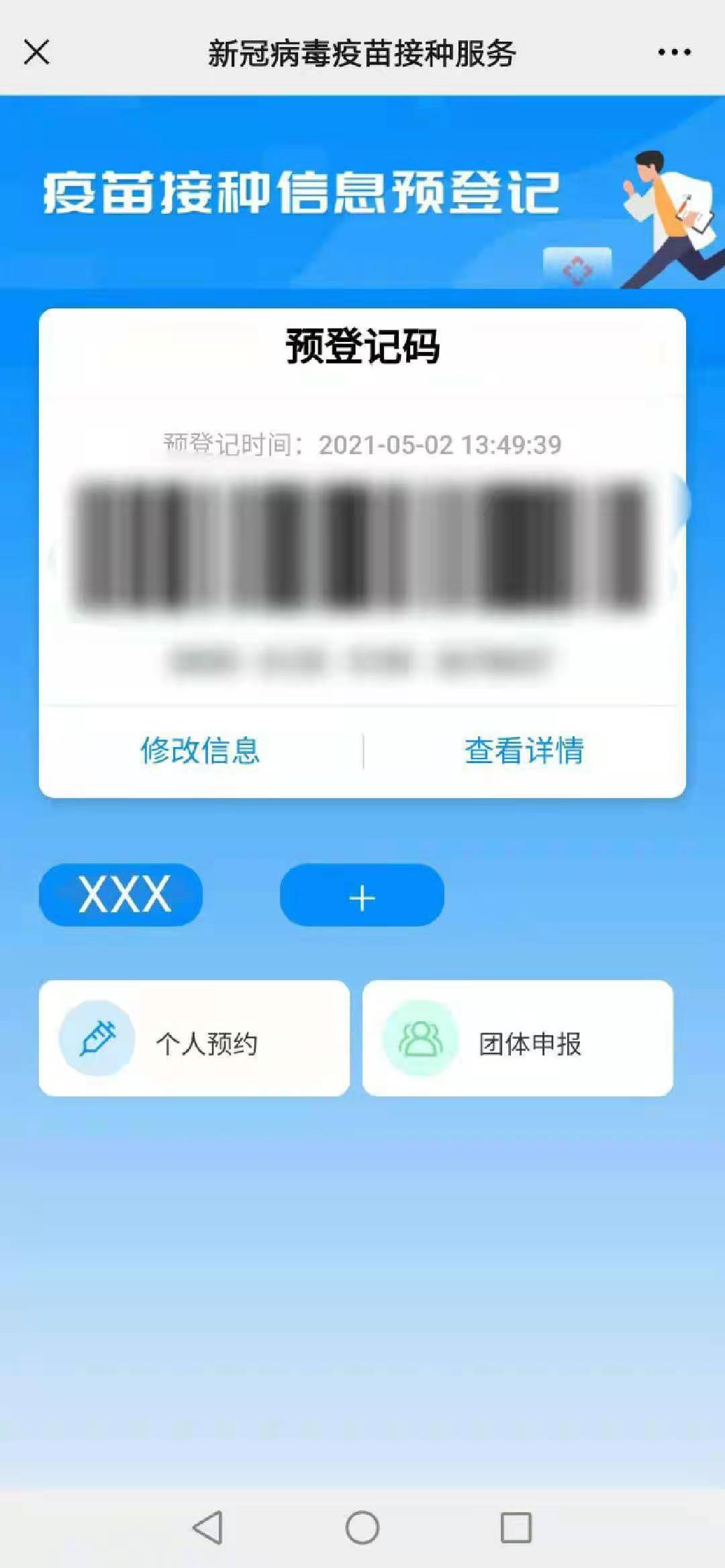 提交后系統(tǒng)會自動生成預(yù)登記碼。如果之前信息填寫錯誤,可以點擊“修改信息”進行修改。