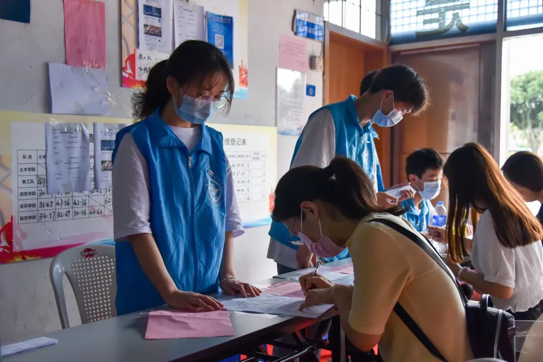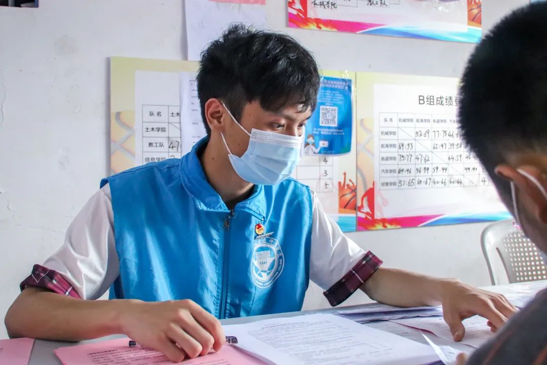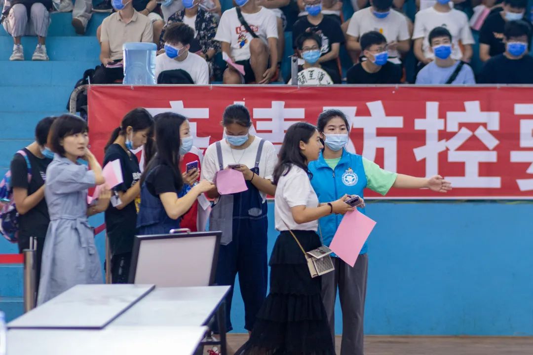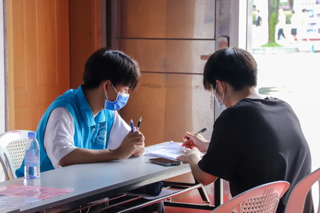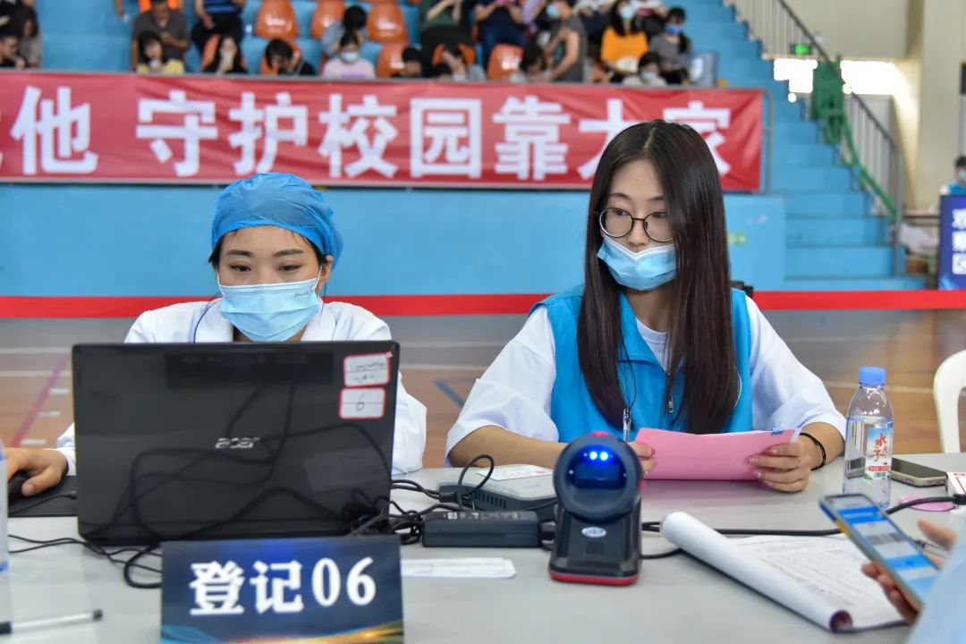 志愿者提醒師生出示接種預約登記信息,協(xié)助填寫登記單、維護現(xiàn)場秩序、耐心解答師生們對于接種新冠疫苗流程的疑問,為疫苗接種工作把好第一道“關(guān)口”。