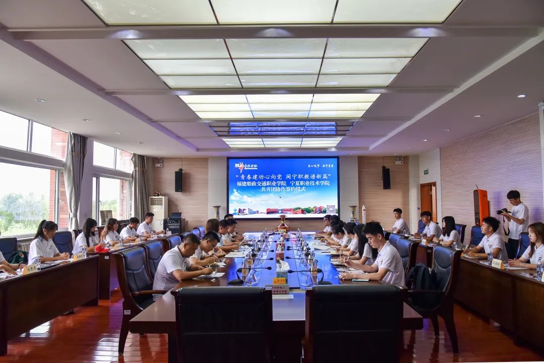 福建船政交通職業(yè)學(xué)院與寧夏職業(yè)技術(shù)學(xué)院團(tuán)委負(fù)責(zé)人簽訂兩校協(xié)作框架協(xié)議。