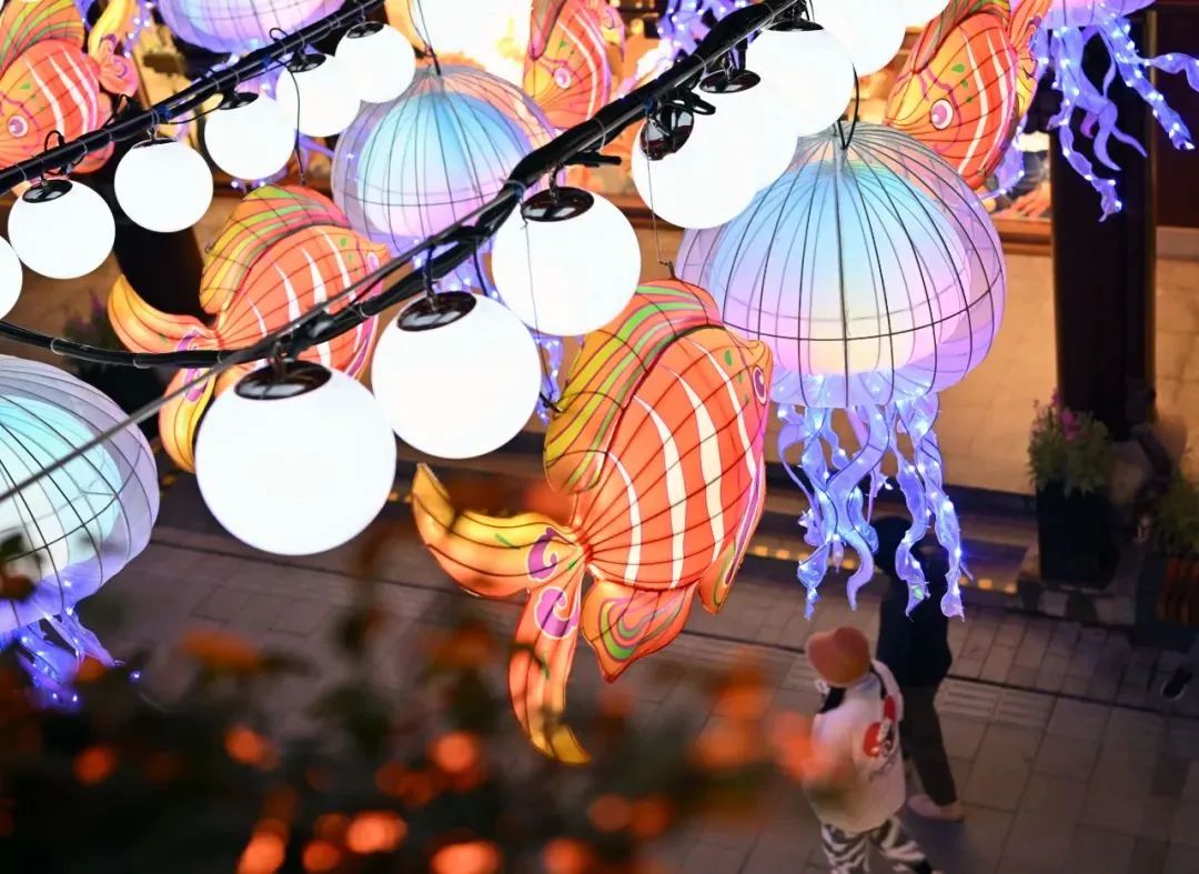 滿街掛滿燈籠,到處花團錦簇,燈光搖曳,到正月十五晚上達到高潮。