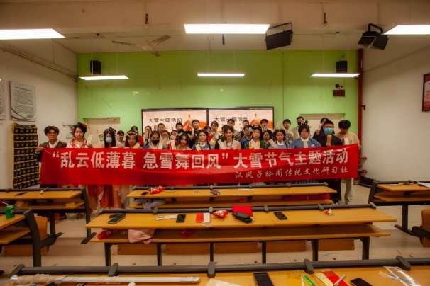大雪,是二十四節(jié)氣中的第二十一個(gè)節(jié)氣,時(shí)間是公歷每年的12月7日或8日,民間有“小雪腌菜,大雪腌肉”的風(fēng)俗。在中國(guó)人的生活中,雪不僅代表了“瑞雪兆豐年”,還有“風(fēng)起,雪飛炎海變清涼”的風(fēng)雅,更有“北國(guó)風(fēng)光,千里冰封,萬(wàn)里雪飄”的豪邁!為弘揚(yáng)節(jié)氣文化、漢服文化,社團(tuán)開展大雪節(jié)氣主題活動(dòng),同學(xué)們通過“雪之飛花令”、投壺和漢服走秀等形式,讓更多的青年學(xué)生充分感受傳統(tǒng)文化的魅力,增強(qiáng)學(xué)生們的文化自信。