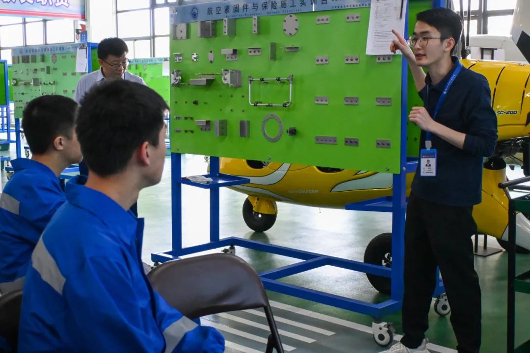 在航空實訓(xùn)基地,福一中的學(xué)生們通過參觀和航空學(xué)院老師的講授,大體了解了飛機維修崗位的特點與技術(shù)要求;并在我校老師的指導(dǎo)下,穿戴飛機維修工作服、防護鏡,領(lǐng)取維修工具,按照維修工單,完成飛機維修工序。