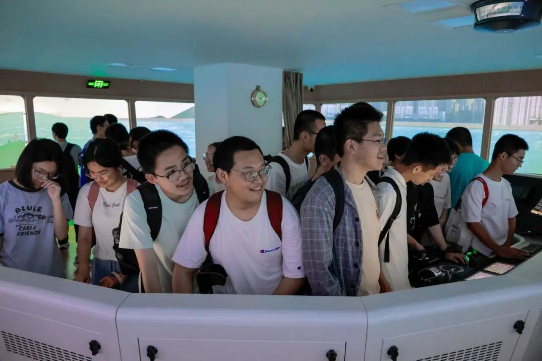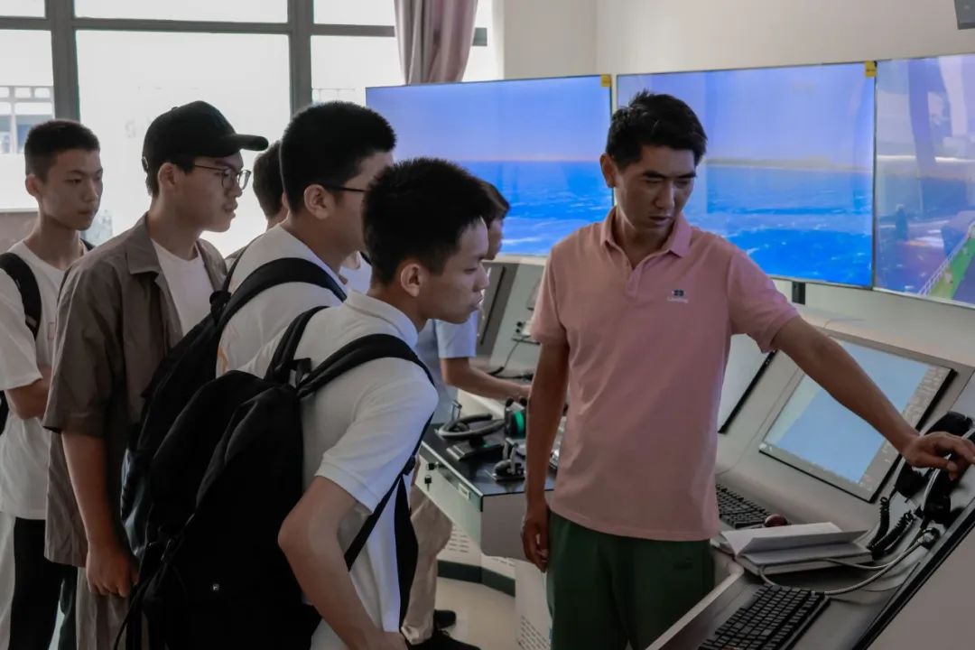 在航海實訓(xùn)基地,福一中的同學(xué)們在我校航海學(xué)院老師的帶領(lǐng)下,通過對航海模擬器的操縱,了解不同船型的操縱性能、船舶避碰規(guī)則、航線設(shè)計、航海儀器使用等專業(yè)基礎(chǔ)知識;同時通過輪機模擬器實訓(xùn),了解了船舶動力設(shè)備工作原理及設(shè)備基本操作。