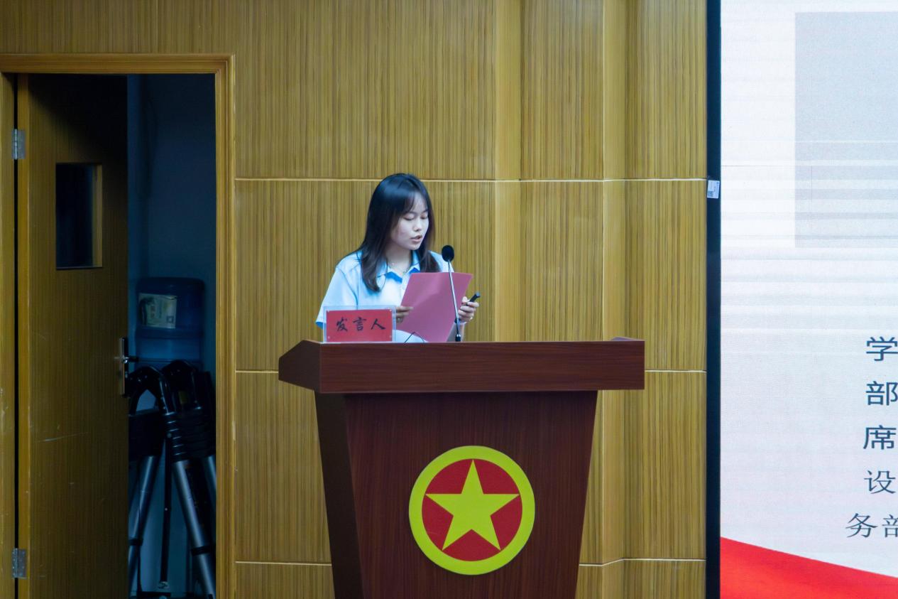 隨后,黃承祖部長分享了他帶隊(duì)參加中華全國學(xué)生聯(lián)合會第二十八次代表大會的深刻感受,結(jié)合全國學(xué)聯(lián)二十八大會議報(bào)告內(nèi)容,深入分析了新時(shí)代新征程學(xué)聯(lián)學(xué)生會工作的根本遵循和重點(diǎn)任務(wù)。報(bào)告深入淺出,妙語連珠,既有青言青語,又風(fēng)趣幽默,獲得了學(xué)員們的陣陣掌聲。