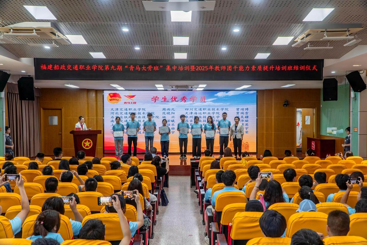 2025年7月25日上午,福建船政交通職業(yè)學(xué)院第九期“青馬大骨班”集中培訓(xùn)結(jié)訓(xùn)儀式在福道園行政樓六樓學(xué)術(shù)報(bào)告廳舉行。結(jié)營儀式由學(xué)院團(tuán)委書記陳慧主持,上海交通職業(yè)技術(shù)學(xué)院高佳樂同學(xué)分享學(xué)習(xí)感悟。學(xué)院黨委副書記張輝為學(xué)員們頒發(fā)了優(yōu)秀學(xué)員證書和結(jié)訓(xùn)證書。
