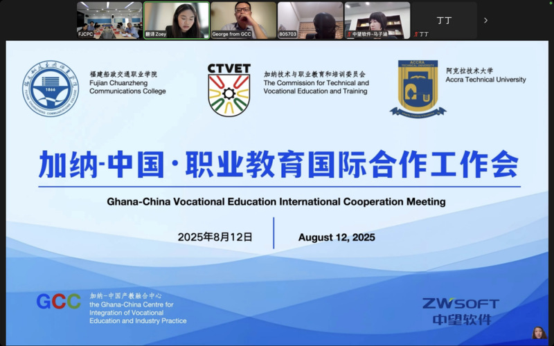 近日,我院與加納阿克拉技術(shù)大學(xué)召開“職教出?!笔状魏献鞴ぷ鲿h。會議由加納教育部技能課程開發(fā)與評估中心主任Peter Boahin主持,加納-中國產(chǎn)教融合中心主任鄭凱歌、阿克拉技術(shù)大學(xué)常務(wù)校長Engr.Prof. Amevi Acakpovi、學(xué)院副院長陳常暉、中望軟件業(yè)務(wù)總監(jiān)于敖出席會議,阿克拉技術(shù)大學(xué)工程學(xué)院院長、我院土木工程學(xué)院院長、中望軟件相關(guān)工作人員及雙方學(xué)校教師代表參加了此次會議。